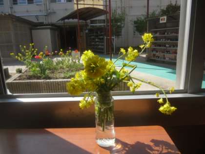 窓辺に花を添えての4組スタートです。この花はなんでしょう?