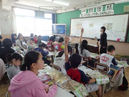 『縄文のむらから古墳のくにへ』の単元を授業参観していただきました。大昔の暮らしぶりを教科書のイラストなどをもとに想像し,縄文時代から古墳時代にかけてどのように変化していったのか考えました。また体育館では修学旅行に向けての説明会もありました。5月19日〜20日の1泊2日で出かけます。ご準備の方,よろしくお願いします。