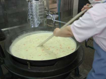 「じゃがいものクリームシチュー」は手作りのホワイトルーです。脱脂粉乳やチーズも入りとてもまろやかに仕上がりました。