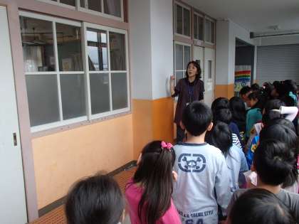 クラスごとに固まって北校舎・南校舎の順に周ります。各学級前ではどこも静かな集中した雰囲気で,感心していました。