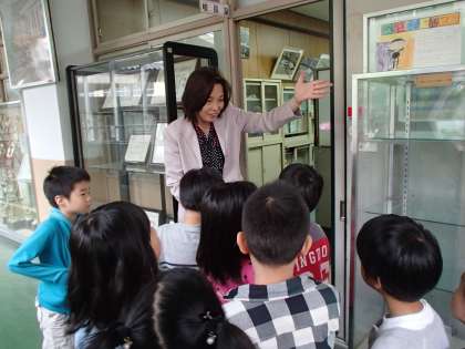 いつもは入れない職員室,貴重な体験です。校長室の前では校長先生が出てきて声をかけてくださいました。
