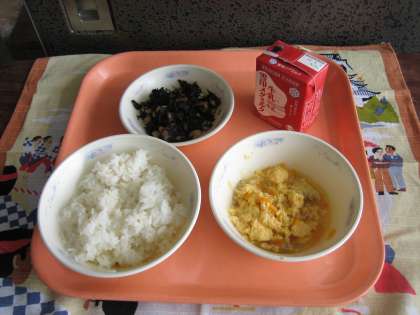 「ひじき豆」は鉄分・カルシウムが多く含まれています。一年生もしっかりと食べていました。