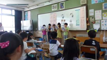 3年生の参観授業は,国語科「きつつきの商売」の音読発表会です。めあては,「場面の様子を思い浮かべ,音読しよう。」です。さすが,3年生。感情をこめて,音読できていました。聞いていて,場面の様子を想像できる発表会でした。