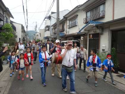 梅宮大社の祭礼で,梅宮大社を出発した神輿が梅津北校区内を通りました。子どもたちも参加し,地域の方々と「わっしょい!わっしょい!」と声を掛け合いながら,元気よく歩いていました。地域の方々も神輿が通るのをあたたかく見守ってくださっていました。