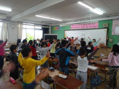 5月12日の1年生を迎える会に向けて,各学年,学級でお迎えの出し物の練習をしています。3年生と5年生では,歌の練習に取り組んでいました。どちらも元気な明るい歌声で,1年生も喜んでくれることだと思います。みんなで1年生をあたたかくお迎えしたいですね。
