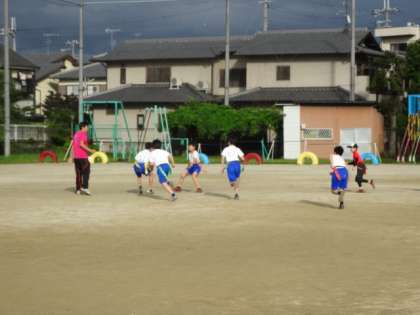 先日,バスケットボールとバレーボールが部活動をスタートさせましたが,運動場ではタグラグヒ゛ーの部活動がスタートしました。昨年度から入部している人たちにとっては久しぶりの活動ですね。今年から入部した人も,これから元気に頑張ってほしいです。