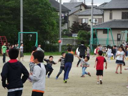 本校は水曜日ロング昼休みで約30分間の昼休みを設けています。その長い昼休みを使って,高学年は児童会活動を進めたり,低学年・中学年は運動場で思い思いに遊んでいます。みんなロング昼休みを楽しみにしています。
