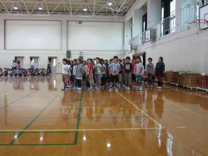 各学年から出し物でお祝いしました。2・3年は合唱、4年はリコーダーの合奏です。