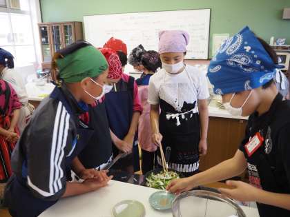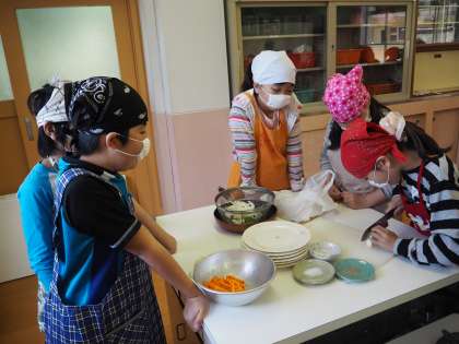 どの班も協力して、美味しい「いろどりいため」を作っていました。