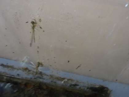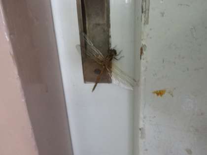 先日プールから捕ったヤゴが教室でとんぼになったと職員室に報告しに来てくれました。教室に行ってみるともう飛んでいるとんぼもいましたが,まだ壁にはりついて羽を乾かしていました。もうしばらく観察してから,外へ放すそうです。また,様子に変化があったら教えてくださいね。