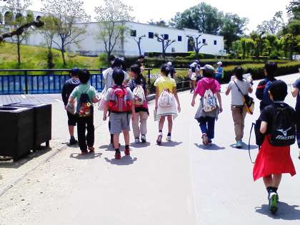 良い天気の下,ただいまリトルワールドの園内散策中です。
