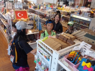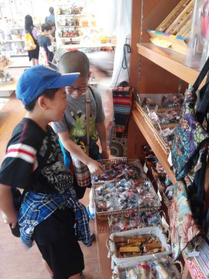 リトルワールドには、様々な国の建物が再現されています。プチ世界一周を楽しんでいます。家族に、自分にとお土産選びもみんな真剣です!