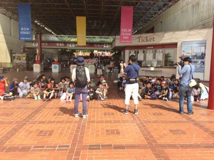 集合時刻にきちんとそろいました。ただいまよりリトルワールドを出発し、科学館に向かいます。