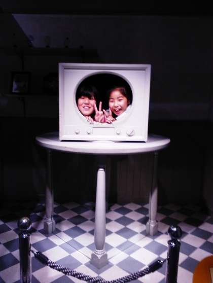 不思議な部屋に入るとあらら…上半身だけになりました。種明かしは6年生に聞いてください。