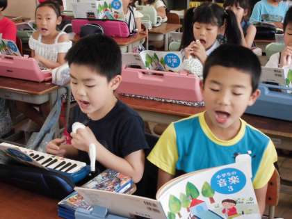 歌い終わるとすぐけんばんハーモニカ,けんばんハーモニカが終わるとまたすぐ歌うという流れなので,子どもたちは結構忙しそうでしたが,次から次へと活動が進むのが楽しかったようで「もっとやりたい!!」「またやろう!楽しい!」と言っていました。