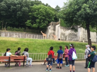 グループで様々な動物を見ています。