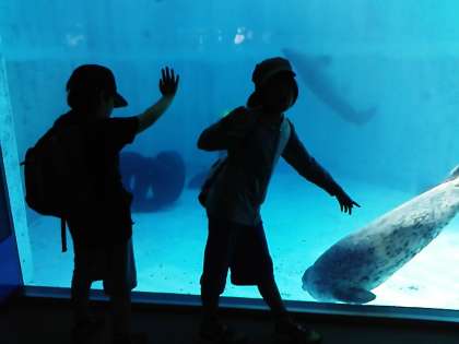 水槽の前でくぎづけてす。