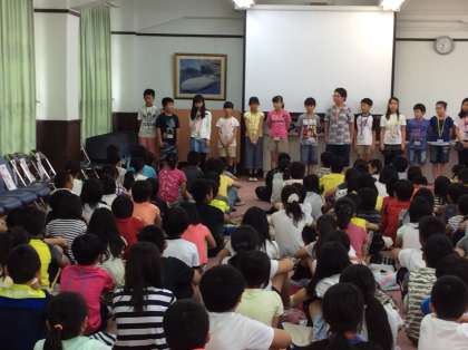 各ブースの代表者が自己紹介と抱負を前で述べました。梅津北小の各ブースの店長やマネージャーは誰もが堂々と述べていました。