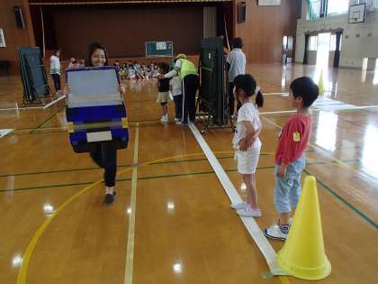 今日は交通安全教室。右京警察からおまわりさんに来て頂いて,体育館で安全な道路の歩き方を勉強しました。