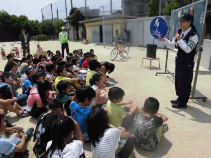 自転車に乗る前に,ブレーキが効くか,ライトは点灯するか,足が地面につくかどうかなど点検する必要があることなどを教えていただきました。