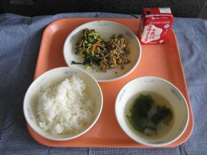 ごはん・牛乳・ビビンバ(具)・わかめスープ