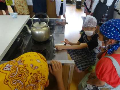 5年生からスタートする家庭科の学習。先日家庭科室の使い方を学習しましたが,今回はその家庭科室で,初めての調理実習でした。エプロン・マスク・三角巾の身支度をしっかり整え,お茶を入れました。お家でもなかなか急須でお茶を入れることはしないみたいですが,今回の実習を生かして,またお家でもお茶を入れて味わってみてほしいです。