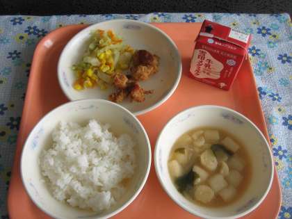 ごはん・牛乳・チキンカツ・野菜のソテー・みそ汁