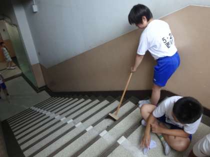 掃除時間の様子です。階段はすぐにほこりがたまり掃除も大変なのですが,担当の5年生がいつも一生懸命に掃除してくれています。6年生もプール掃除や様々な場面で気持ち良く活動に取り組んでくれますが,5年生も負けないぐらいのはたらきです。高学年のみんなの頑張りが梅津北小学校を支えています。これからもよろしくお願いしますね!!