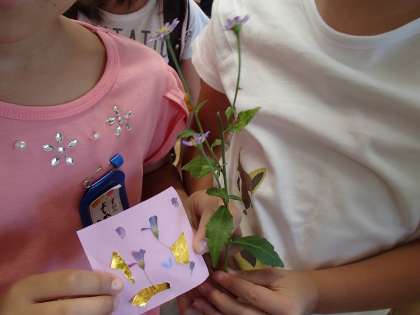 もう一人の子は,折り紙にお花を貼りつけた作品を手渡してくれました。