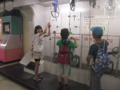 滑車のしくみ。滑車を使うと40kgの重りも持ち上げることができます。