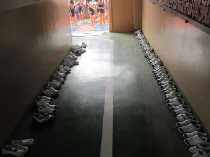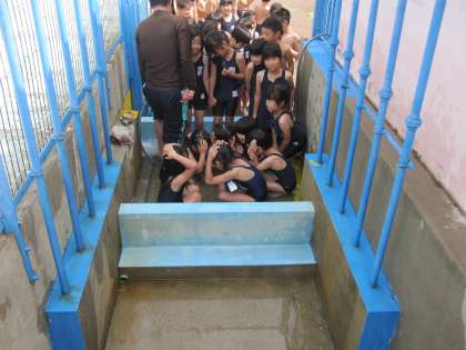 まず、きれいに靴を並べてプールへ移動。次に腰洗い漕につかります。