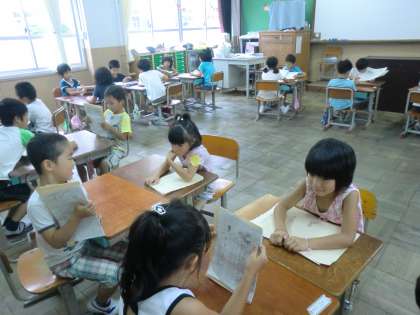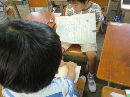 次に2人で。隣どおしや,円になって…など,色々な発表の仕方を学習しました。