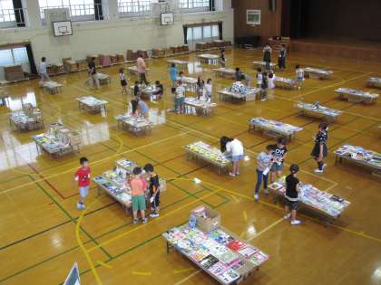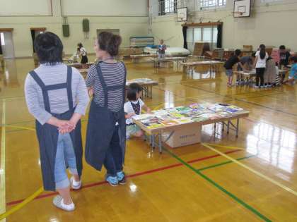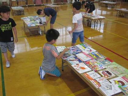 子どもたちは熱心に本を選んでいました。中には、座り込んで読みふけってしまう子どもたちもいました。