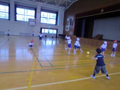 1年生のみんなにはボールを受けるのも,ころがすのも一苦労です。