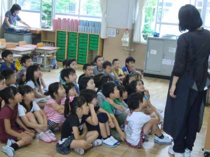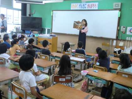 朝の読書の時間には,ありすのいえの方が各クラスに本の読み聞かせに来てくださっています。