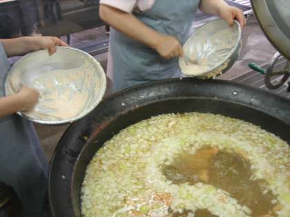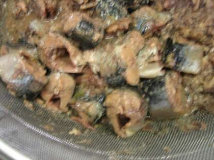 「さばそぼろ丼(具)」(新献立)です。平成27年度物資選定委員会で採択された新しい物資「さば(缶)」を使用しました。缶詰のさばをほぐしたものと、しょうが・人参・しいたけを炒めたそぼろをごはんに混ぜて頂きました。さば(缶)に入っている骨はやわらくなっているので、細かくほぐれて一緒に食べられました。
