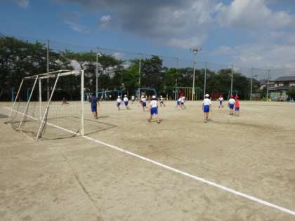 運動場ではサッカークラブが一生懸命にボールを追っていました。