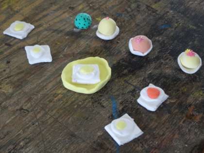 図工クラブは紙粘土を使って,ミニチュアづくり。とてもこまかい作業をていねいにしていました。