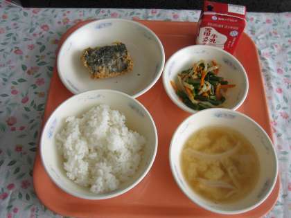 ごはん・牛乳・さわらのたつたあげ・野菜のきんぴら・みそ汁