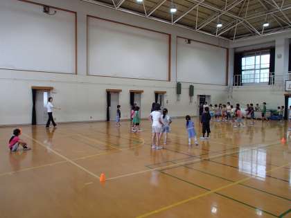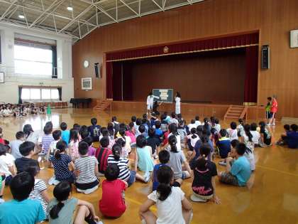 子どもたちは朝のおはようタイムの時間に体育館に集合しました。今日のロング昼休みにする,あそびの場所と内容を打ち合わせするためです。