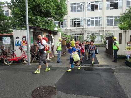 地域の見守り隊の方々にも見送られながら,学校を元気に出発しました。今は雨も上がりましたが,良い天気のもとで活動できることを願うばかりです。行ってらっしゃい!!