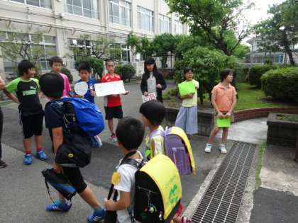 児童会の運営委員会のメンバーが正門の前に立って,登校してくるみんなに元気なあいさつの声を届けてくれました。いつもと違う光景にびっくりしながらもあいさつを返す姿がありました。これからもみんなで気持ち良いあいさつを交わして一日をスタートさせたいですね。