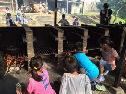 野外炊事,みんなで協力して作っています。もうすぐ出来上がりそうです。