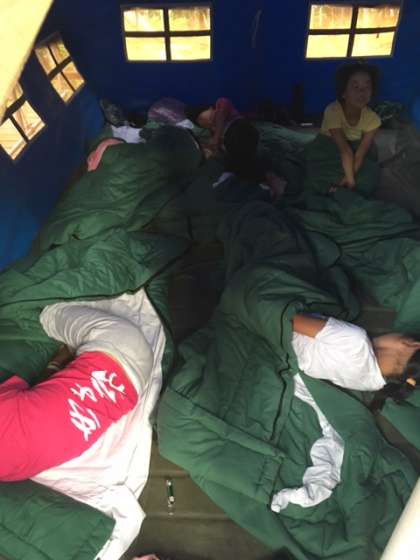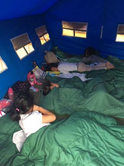 テントで寝ていた女子はまだ眠そうです。