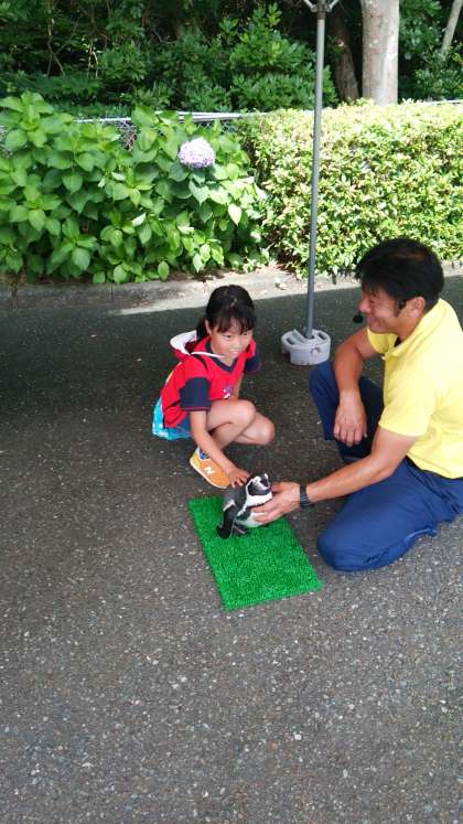 ペンギンタッチをしてます。