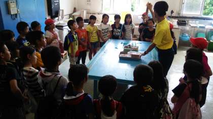 1組も,今から水族館の魚に餌やり体験です。