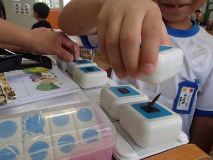 1年生の子どもたちは毎日が発見!今日はたまたま置いてあったねじと,磁石の入ったブロックで実験を始めました。