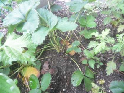 5月に旬を終えたイチゴ。6月末に花が咲いて2つほどですが実がなりました。収獲はもう少し赤くなるまで待とう、次の日位に収穫しよう、と決めていたその日の放課後です、やられました!!