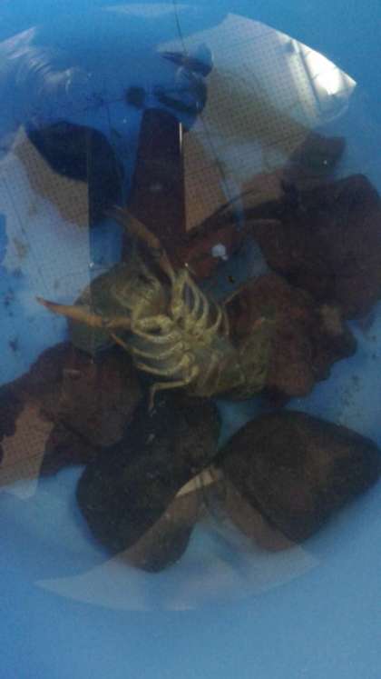 教室に戻って、ザリガニのエサや棲みかについてインターネットや図鑑で調べています。そんなこんなしているうち、脱皮していました。またまた大騒ぎです。しばらく、興奮が続きそうです。