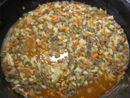 本日の献立は大人気の「焼肉」です。牛肉を炒めて、人参・玉ねぎ・ピーマン・キャベツを別に炒めたものと合体させて仕上げました。